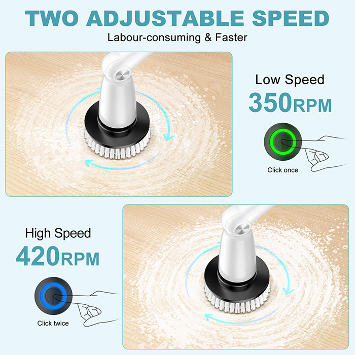 With 2 adjustable speeds —350 RPM for a gentle clean and 430 RPM for deep scrubbing.