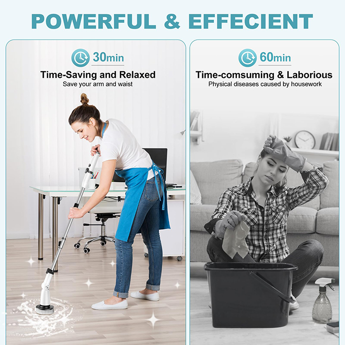 You will have more leisure time with this highly efficient electric spin scrubber,