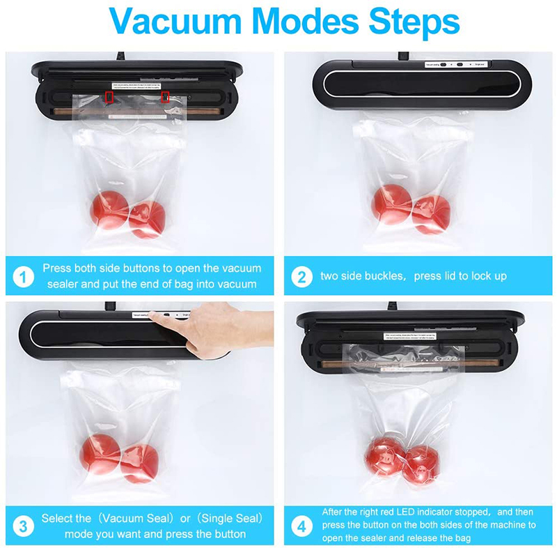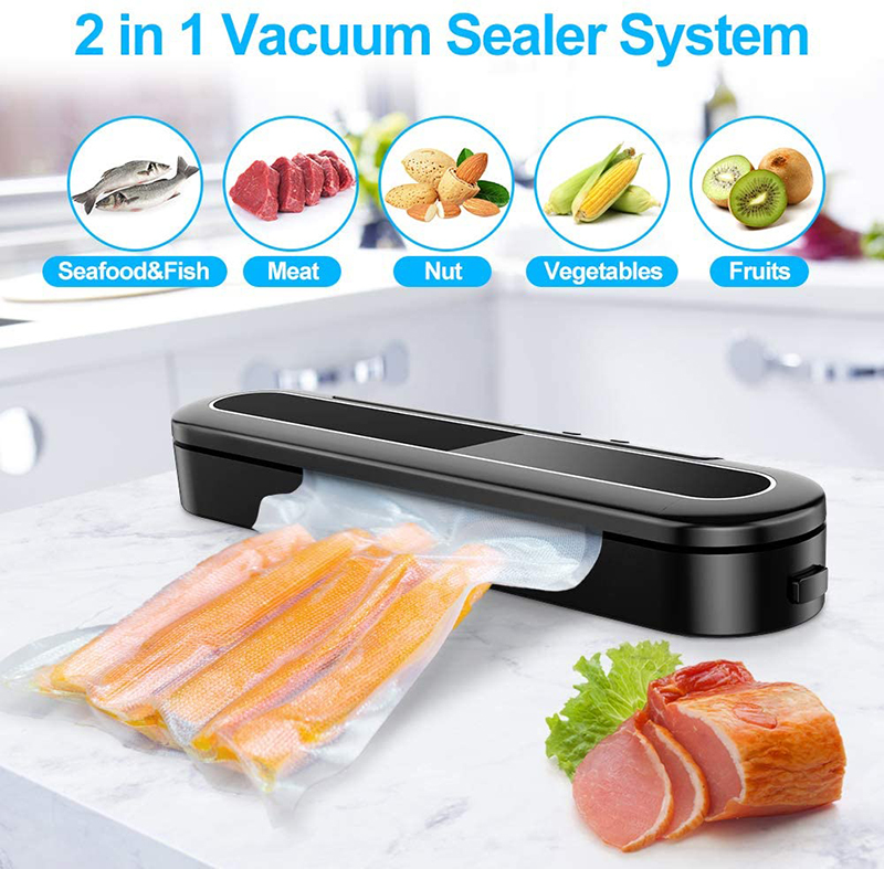 Food Vacuum Sealer quickly removes air from heat-seal bags to reduces spoilage and food waste,