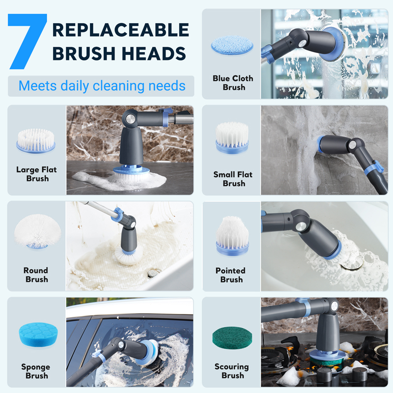 Cordless Cleaning Brush with 7 Replaceable Brush Heads,