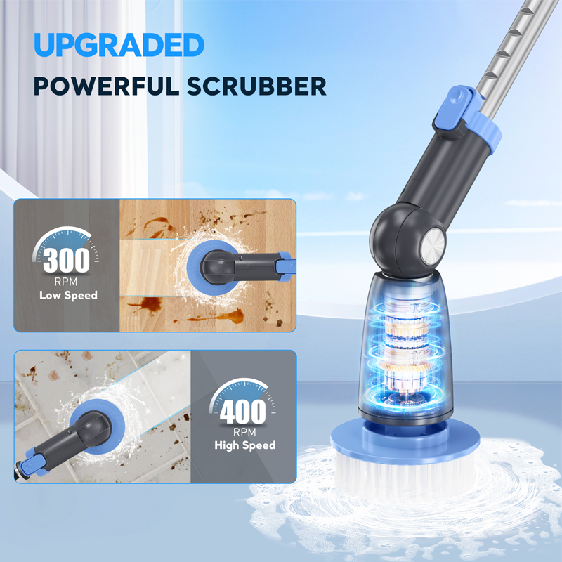 Cordless power scrubber allows you to tailor your cleaning approach.